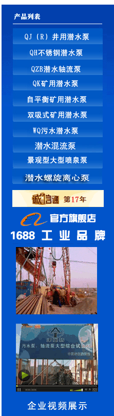 <7.5>關(guān)于天津奧特潛水電泵的用途與分類 <7.5>深井泵變頻技術(shù)水源熱泵中的應(yīng)用 <7.5>天津深井潛水泵使用前注意事項 <7.5>供應(yīng)天津高揚(yáng)程礦用潛水泵 <7.5>深井潛水泵導(dǎo)葉的正交試驗與優(yōu)化設(shè)計 <7.5>潛水電泵電壓反射現(xiàn)象探討